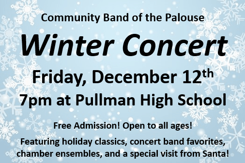 Community Band of the Palouse, a 501(c)3 non-profit corporation, performs live music for the enjoyment and education of local community members while providing opportunities for life long musicians to share and grow their musical talents, as well as helping to preserve the community band tradition.