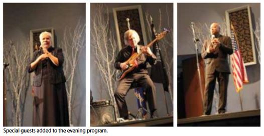 2019 Veterans Day Concert special guests: Nancy Grunewald, Dave Snider, & Horace Alexander Young; photo credit: Sue Hinz